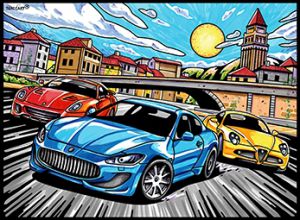 Zijn magische formule bestaat in de combinatie van een harde ondergrond, vilten randen en een breed kleurengamma.